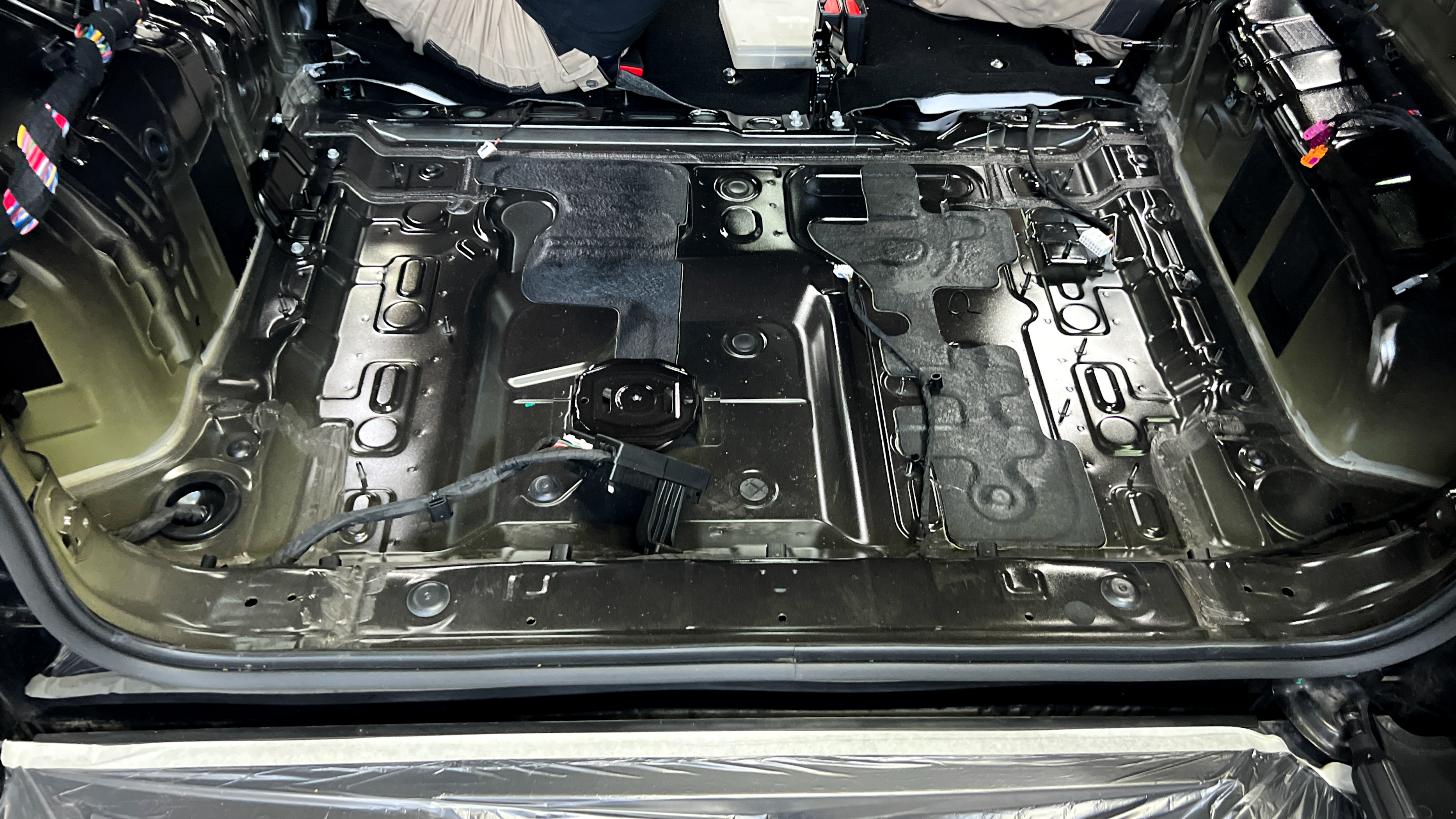 Перед началом шумоизоляции пола на Tank 300 (Танк 300) необходимо проверить качество адгезии заводской виброизоляции к кузову. Она должна хорошо держаться, в противном, случае её необходимо демонтировать.