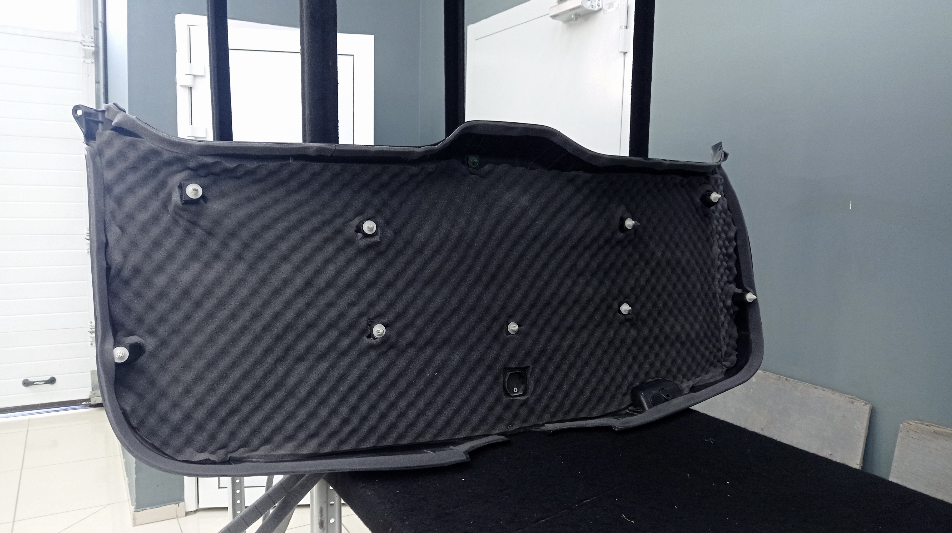 Для виброизоляции крыши багажника используем материал Шумофф L2, чтобы свести увеличение веса к минимуму. После чего переходим к обшивке.