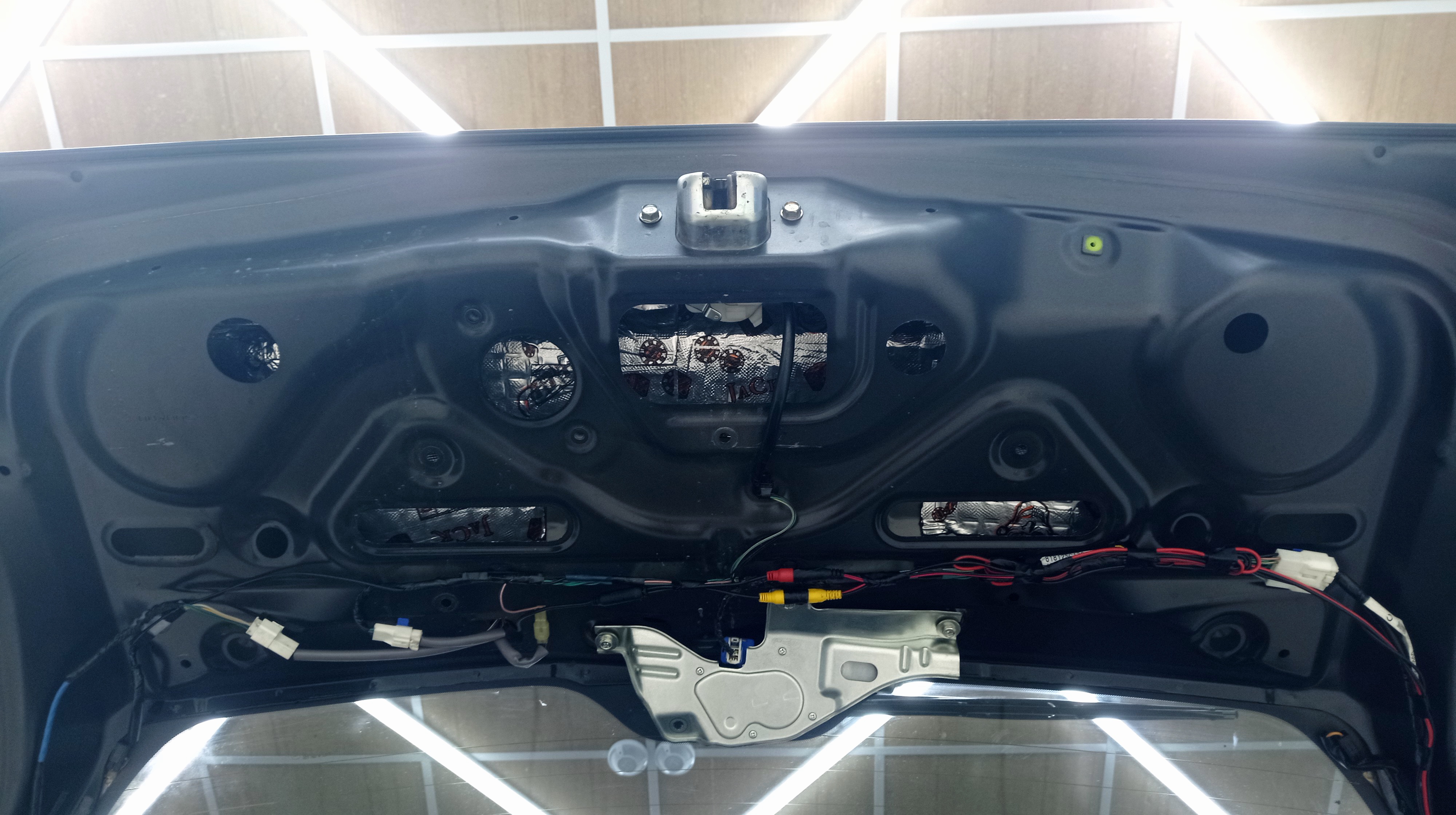 Обшивку пятой двери оклеиваем Flex А15, для устранения ненужных скрипов и бряков.